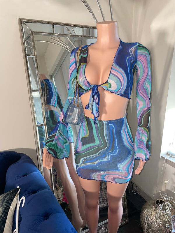Bring the heat with this abstract printed two piece set. Perfect for vacay or a night out.